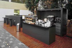 Betalingsstationerne med service og postmix, udført helt i rustfrit stål.
